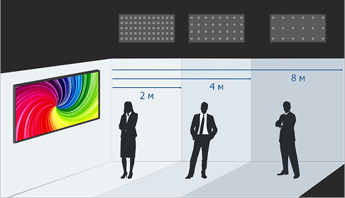 Шаг пикселя (мм) = минимальное расстояние просмотра (м), с которого изображение на светодиодном полотне имеет четкость и в нем отсутствует зернистость.