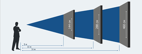Оптимальный размер экрана в зависимости от дистанции просмотра: